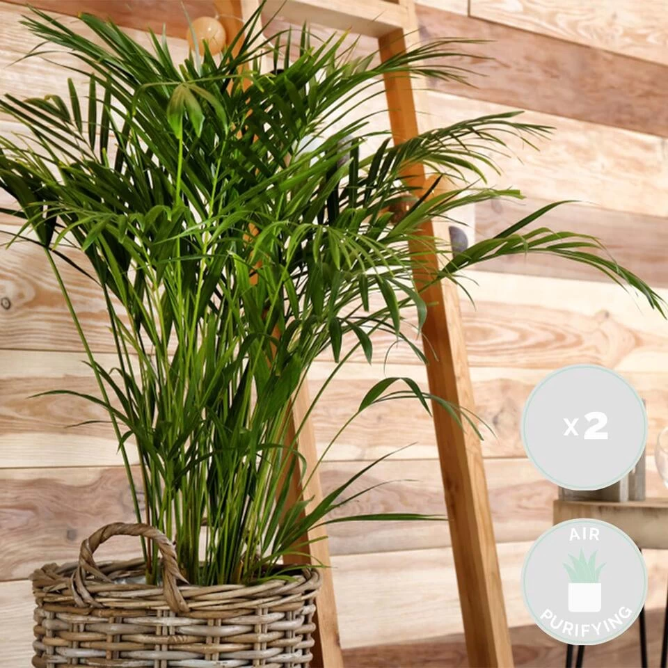 Haal de tropen naar jouw huiskamer met de binnenpalmen mix! Laat het zonnetje maar schijnen en waan je in de tropen met deze onderhoudsvriendelijke palmen. Deze Dypsis en Chamaedorea zijn geknipt om in jouw woonkamer te vertoeven en door hun gemakkelijke karakter waan jij je zo in de tropen. Naast dat deze palmen er fantastisch uitzien, zuiveren deze planten ook nog eens de lucht! Wij weten het zeker, deze twee kanjers toveren in een mum van tijd jouw huis om in een groene oase.