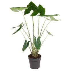 Deze gigantische Alocasia Zebrina is een ontzettend populaire en bekende kamerplant. Oorspronkelijk komt de Alocasia uit Azië waar de plant groeit in het regenwoud. Maar tegenwoordig is de Zebrina heel vaak in huizen te vinden vanwege zijn fantastische gestreepte stelen. Deze zijn namelijk zwart wit gestreept, net als een zebra. De aparte stelen in combinatie met zijn prachtige groene bladeren zijn kenmerkend voor de Alocasia. De mooie hartvormige bladeren doen ook wel denken aan de flaporen van een olifant. Om die reden wordt de plant ook wel ‘Olifantsoor’ genoemd.