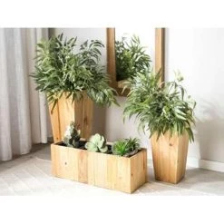 Beliani Plantenbak Voor Buiten TRIKALA – Lichte Houtkleur Dennenhout