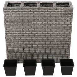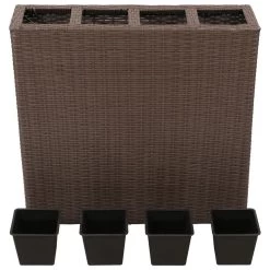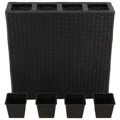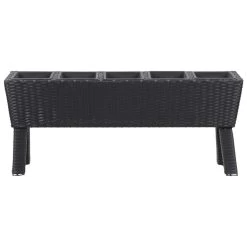 VidaXL Plantenbak Verhoogd Met 5 Potten 118x25x50 Cm Poly Rattan Zwart