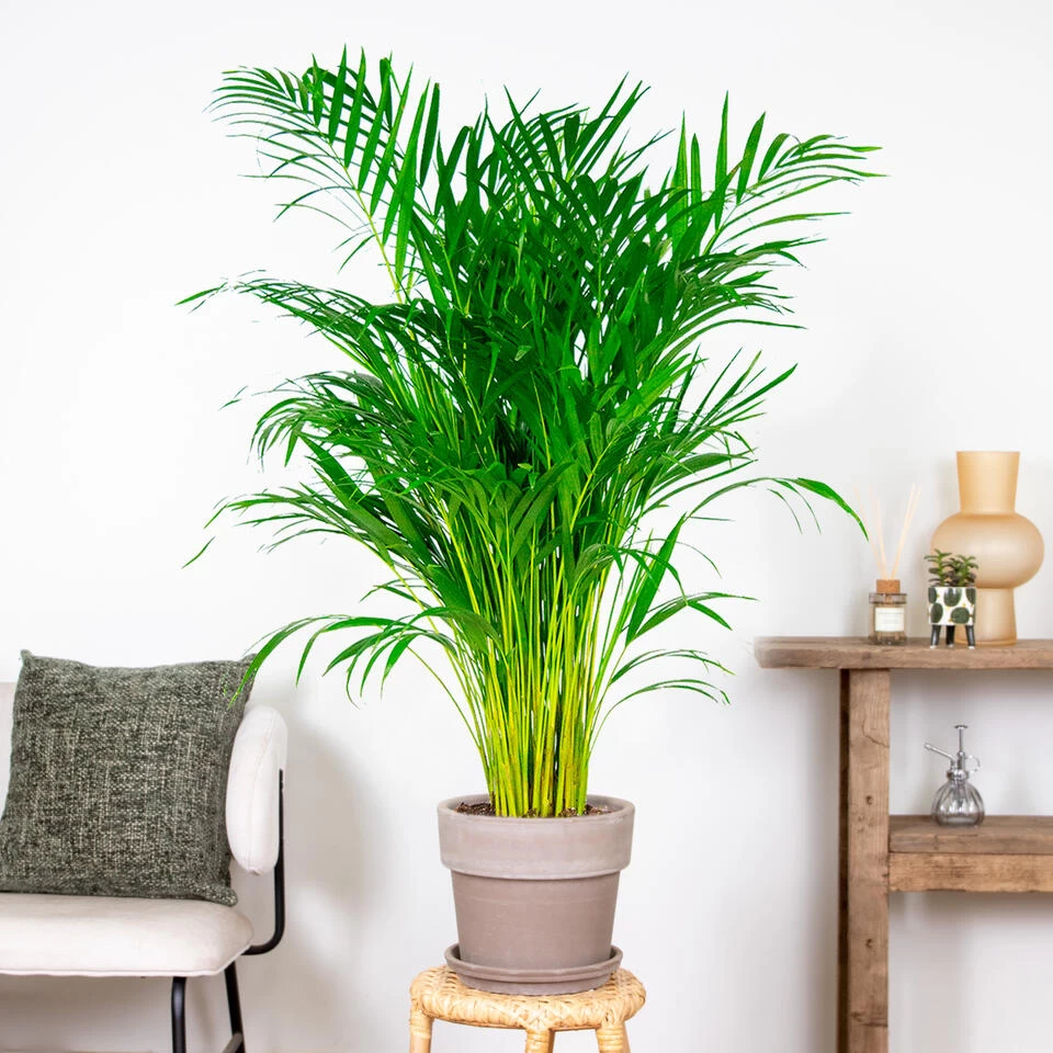 Haal de tropen naar jouw huiskamer met de Dypsis Lutescens! Laat het zonnetje maar schijnen en waan je in de tropen met deze onderhoudsvriendelijke goudpalm. De Dypsis is geknipt om in jouw woonkamer te vertoeven en door zijn gemakkelijke karakter waan jij je zo in de tropen. Naast dat deze palm er fantastisch uitziet, zuivert deze plant ook nog eens de lucht – een echte winnaar om te hebben. Niet voor niets is de Dypsis Lutescens ook wel bekend onder de koning van de tropen. Haal deze goudpalm snel in huis en geniet meteen van het ultieme vakantiegevoel.