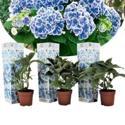 Hortensia ‘Bavaria’ is heel bijzondere, tweekleurige hortensia welke bloeit met blauw-witte bloemen. Tweekleurige hortensia’s zijn modern, populair en dé blikvanger die uw tuin, terras of balkon in een zomerse sfeer brengt. Bovendien is Hortensia ‘Bavaria’ ijzersterk en rijk- en langbloeiend. De Hortensia bloeit van juli tot in september, en wordt ongeveer 120cm hoog.