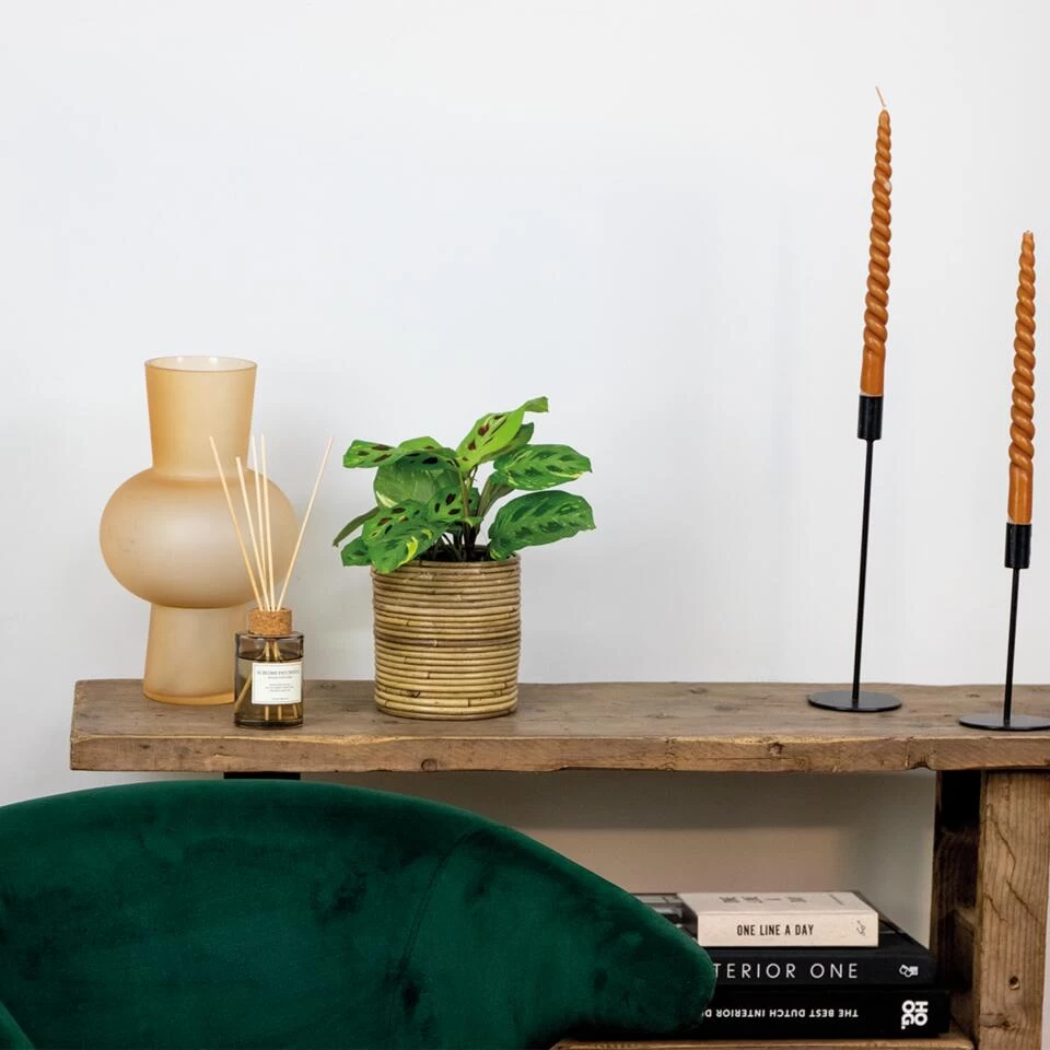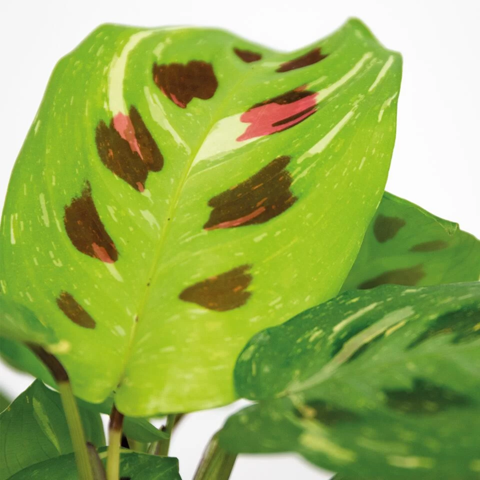 De Maranta Variegata is een van de vele luchtzuiverende plantsoorten van de Marantaceae familie. Deze kamerplant is bekend onder vele bijnamen, maar een van de bekendste is wel gebedsplant. Deze naam heeft zij te danken aan haar nachtelijke bewegingen. Naast dat deze topper onderhoudsvriendelijk is, steelt zij ook de show in ieder interieur. Door haar unieke gevormde blad vol met magische bladtekeningen en kleur is zij een oogverblindende verschijning in ieder interieur. Wist je dat de Maranta eigenlijk een echte hangplant is, maar in haar groeispurt eerst omhoog groeit?