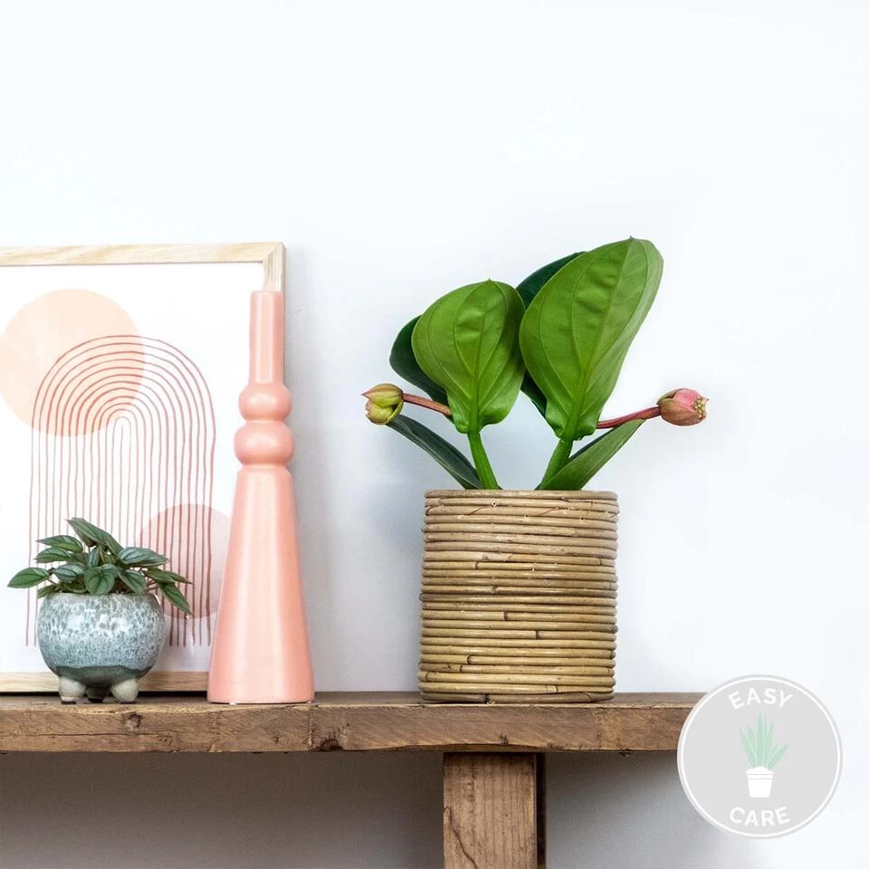 Deze prachtige Medinilla magnifica ‘Lambada’ is een onderhoudsvriendelijke kamerplant en in het Nederlands ook wel bekend onder de naam trosbloem. De Medinilla Lambada bloeit met kleinere donkerroze bloemtrossen. Door zijn tropische afkomst houdt de Medinilla van een lichte plek – maar houdt niet van direct zonlicht. In de winter is de Medinilla minder kieskeurig. Niet alleen is de Medinilla gemakkelijk in zijn onderhoud, ook is deze plant een ware verschijning voor in jouw huis.