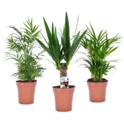Waan je in een jungle met deze mooie palmen set! Deze palmen zien er niet alleen prachtig uit, ze zijn ook nog eens makkelijk te onderhouden. Dit maakt ze uitermate geschikt voor mensen met beginnende groene vingers. De set bestaat uit een Chamaedorea Elegans, een Areca Lutescens en een Yucca Elephantipes.