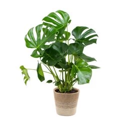 Een regelrechte tropische topper: de Monstera Deliciosa Incl. Jute Mand Nea. Met zijn grote, groene bladeren heeft deze gatenplant ook nog eens luchtzuiverende eigenschappen. Op deze manier produceert hij extra zuurstof en filtert hij schadelijke stoffen uit de lucht. Zijn grote bladeren bevatten gaten en worden met de jaren alsmaar groter wat hem erg bijzonder maakt. Een kamerplant die niet alleen zorgt voor een beter binnenklimaat, maar die ook nog eens de show steelt!
