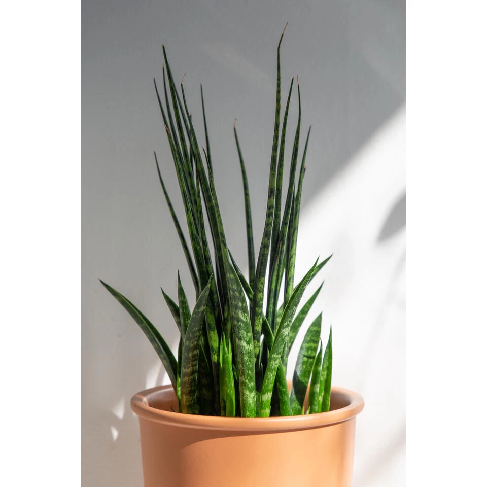 Mijn Sansevieria Fernwood Mikado staat voor het raam! Dit is een onderhoudsvriendelijke plantje én onder de meesten wel bekend als vrouwentong. Je herkent de Sansevieria Mikado aan zijn de vele, smalle bladeren met een donkergroene kleur met zachte lichtgele vlekken. Deze succulent vraagt weinig aandacht en mag je wel eens vergeten water te geven – graag zelfs. Een vaste stamplek heeft hij niet, zo kan hij vrijwel overal neergezet worden. Naast dat die gemakkelijk is in de omgang is hij ook nog eens luchtzuiverend. De perfecte groene vriend voor diegene met lichtgroene vingers.