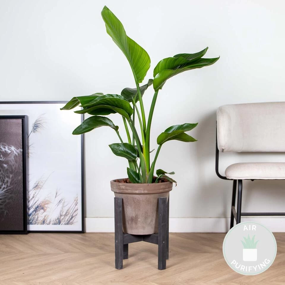 Strelitzia Nicolai, beter bekend als Paradijsvogelplant heeft grote, groene bladeren en is daarnaast ook nog eens luchtzuiverend! Zo produceert hij extra zuurstof en breekt hij schadelijke stoffen af. Deze Nicolai heeft zijn naam te danken aan zijn welbekende paradijsvogelbloemen. Helaas voor ons groeien deze zwart/witte bloemen alleen in de jungle. Maar niet getreurd deze fantastische plant heeft peddelvormige bladen en sterke, lange bladeren. In huis kan deze plant wel een hoogte bereiken van maar liefst 2 meter. Zo creëer je pas echt een jungle sfeer in huis!